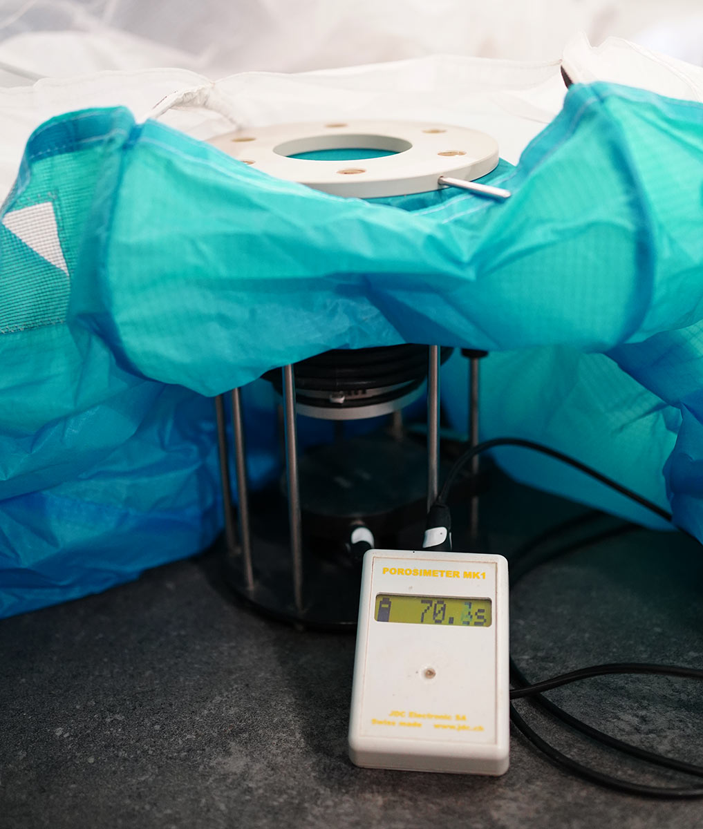 Mesures précises de la porosité des tissus, sur l’extrados, en 5 points répartis sur la corde de l’aile.